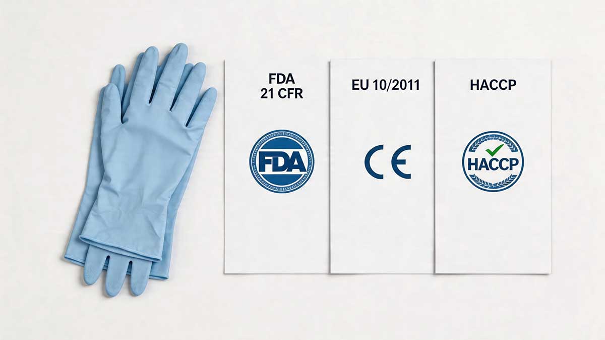Are your nitrile gloves truly food-safe? From FDA 21 CFR to EU Regulation 10/2011 and HACCP requirements — here's Jixiang's complete compliance guide for food industry buyers.
